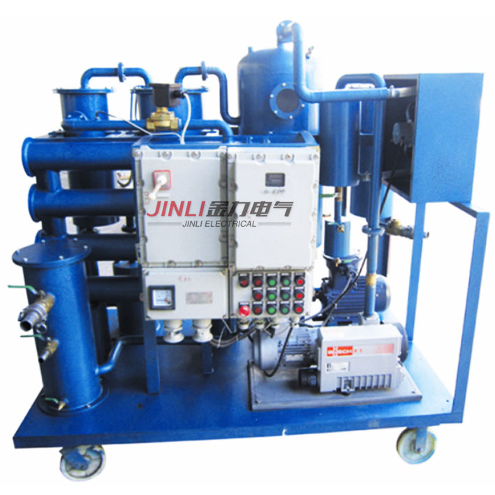 汽輪機(jī)、液壓機(jī)在運(yùn)行中,塵埃、雜質(zhì)(磨損的金屬顆粒)、水份,會(huì)混入設(shè)備油箱中,引起油嚴(yán)重乳化,使設(shè)備的潤(rùn)滑性能降低,嚴(yán)重者將燒壞軸瓦、缸體,堵塞液壓系統(tǒng)集成塊,使壓力達(dá)不到額定值,影響主機(jī)的運(yùn)行。當(dāng)每次更換新油,成本增加原因是主缸體,或油箱四壁有較重油泥,不及時(shí)循環(huán)過濾。就是加了新油,油箱內(nèi)油質(zhì)仍很差,因此用濾油機(jī)并聯(lián)在主油箱內(nèi),循環(huán)過濾數(shù)遍,可將主機(jī)所有死角,過濾更徹底,使主機(jī)油質(zhì)始終保持良好狀態(tài)。